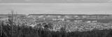 Severobaikalsk, Republic of Buryatia, Siberia, Russia. View of the city of Severobaikalsk, located on the coast of Lake Baikal. Winter city landscape. Lake Baikal is covered with ice. Wide panorama.