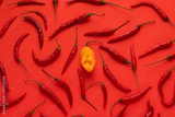 Red Chilli Andhra Hot Peppers And Habanero Yellow. Top view.