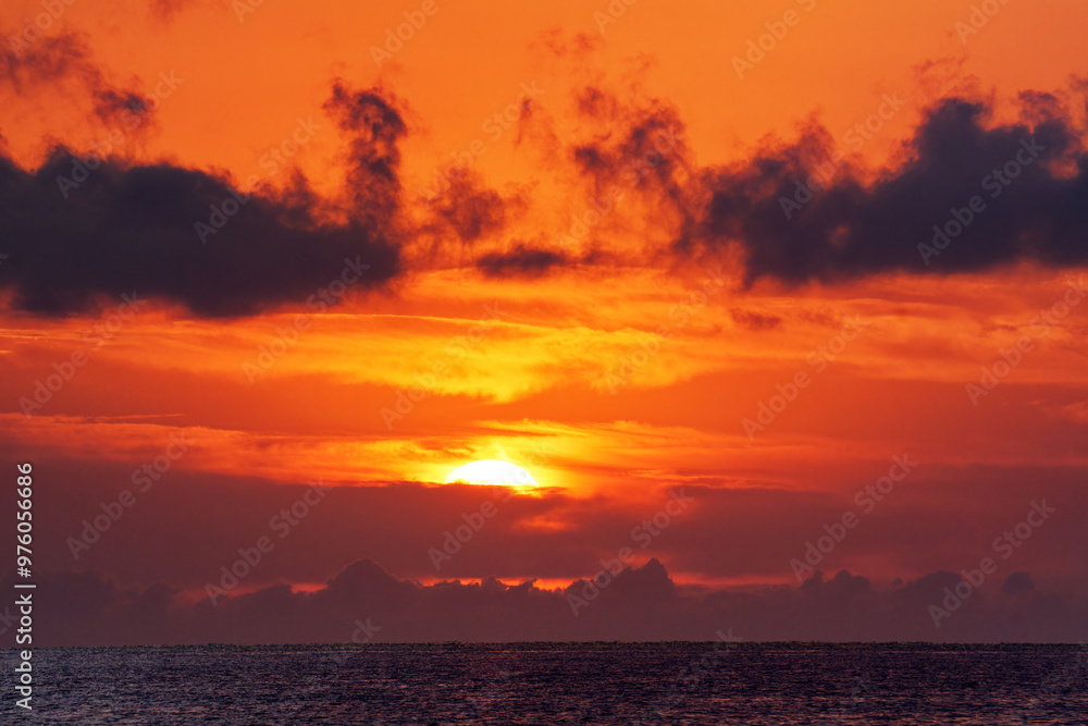 Sunrise over the Tyrrhenian Sea in eatern coast of Corsica island