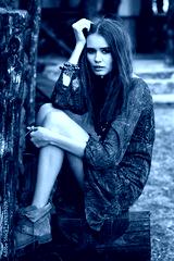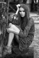 Outdoor fashion portrait of young beautiful woman. Boho chic sty