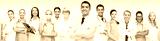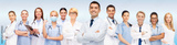 group of smiling doctors with clipboard