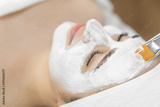 Indulge in a peaceful spa experience with a luxurious facial treatment using a white mask for rejuvenating skincare in a serene setting. Enjoy a moment of relaxation and beauty pampering
