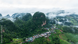 morning mist at Ban Ja Bo view point, Mae Hong Son Province Thailand, aerial drone point of view.