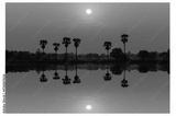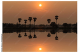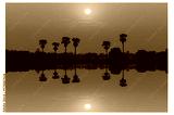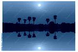 sunlight and silhouette coconut reflection on water at morning for wallpaper, poscard, abstract, backgrounds,