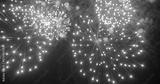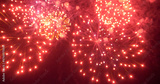Blurred background Red Firework celebrate anniversary happy new year 2025, 4th of july holiday festival. Blurry red firework night time celebrate national holiday. Countdown to new year 2025 festival
