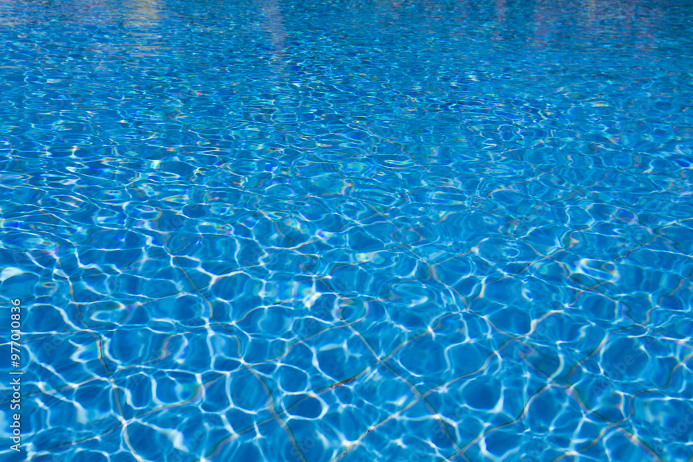 Water in swimming pool rippled water detail background. Blue in the water in the swimming pool.