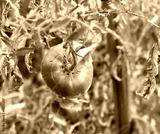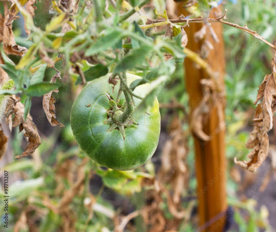 green tomatoes in the garden hanging on a branch