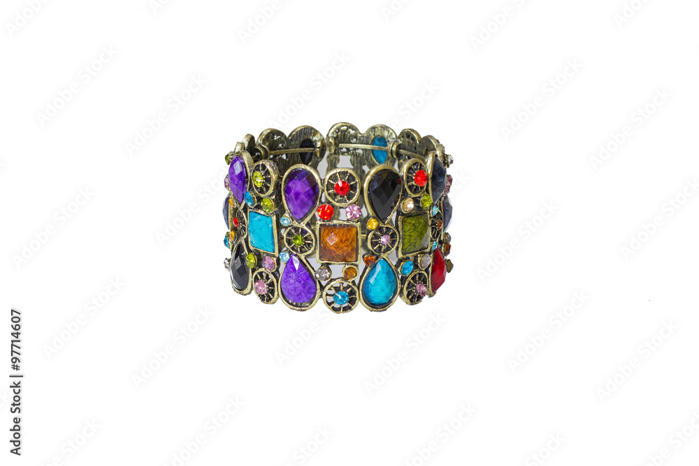 metal bracelet encrusted with colored stones, fashion jewelry