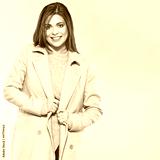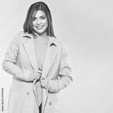 Fashion style portrait of smiling woman with long hair.