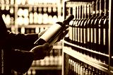 Faceless Person Holds Taking from Shelf Bottle of Wine in Store, Close up