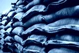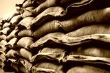 Jute Bags Filled With Fresh Green Coffee Beans Stacked in a Warehouse Ready for Processing and Distribution