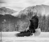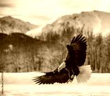 Bald Eagle ( Haliaeetus leucocephalus ) landed on snow