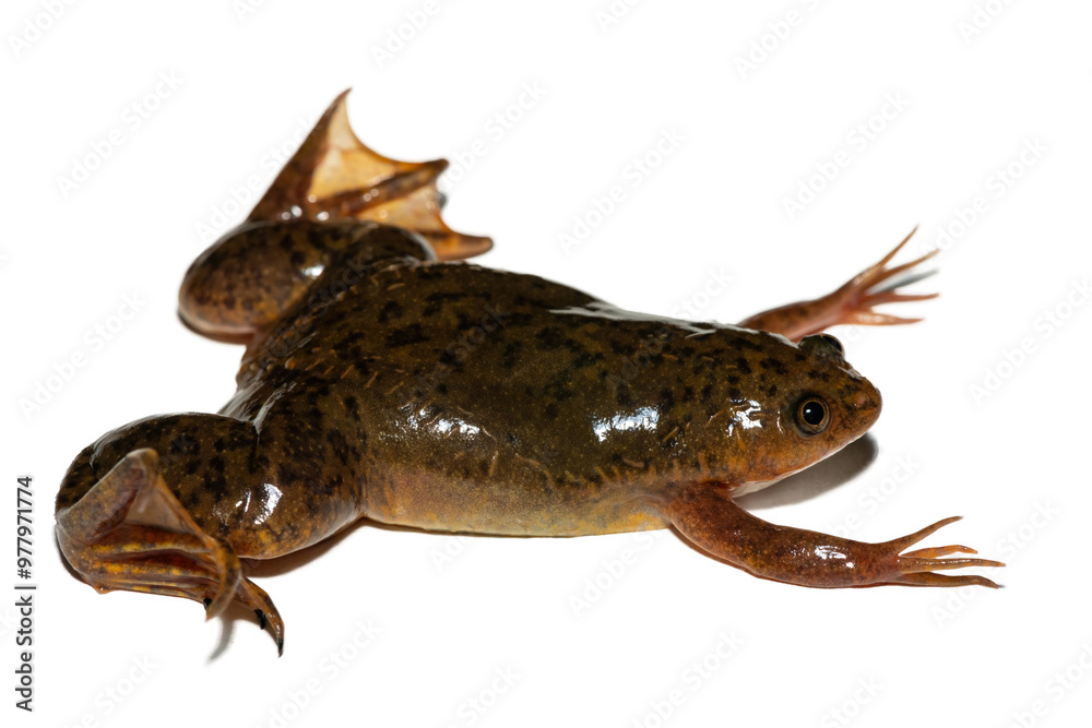 A cute Common Platanna, also known as the African Clawed Frog (Xenopus laevis) against a white background
