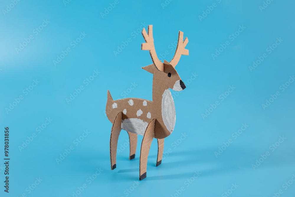 Deer paper craft model on plain background, recycling concept, ideal for craft enthusiasts and animal model projects,