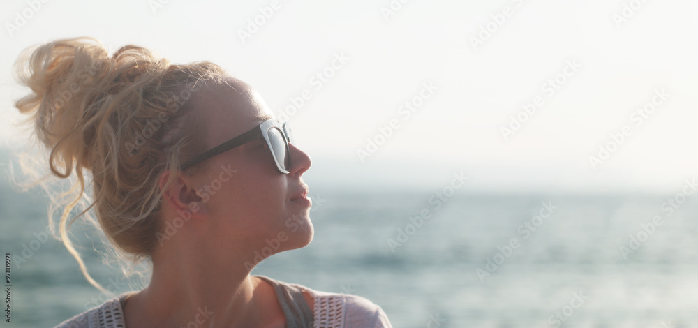 Pretty young hippie caucasian girl, enjoys good weather and the