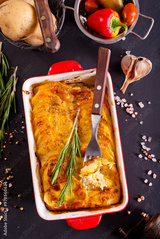 Potato gratin - graten (baked potatoes with cream and cheese) .