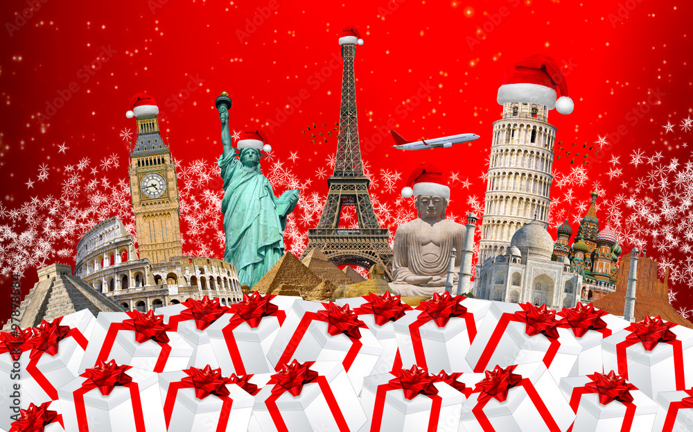 Famous monuments of the world celebrating christmas