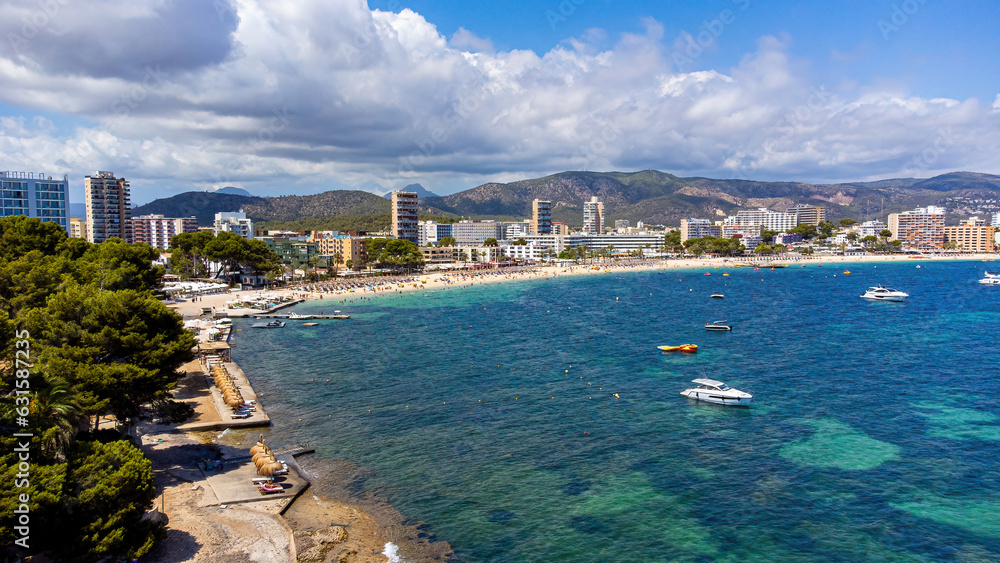 Panoramic view where we can see the Bujaco tower and the Estrella arch, one of the entrances to the historic center, a monumental complex, of the city of Caceres, in Extremadura, Spain.