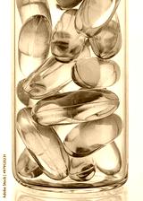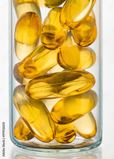 Close-up of shiny yellow vitamin capsules, healthy concept