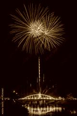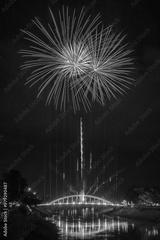 Beautiful Fireworks and light Chan Palace bridge over the Nan River New Landmark It is a major tourist in the VIJITR PHITSANULOK event is Public places attraction Phitsanulok,Thailand.