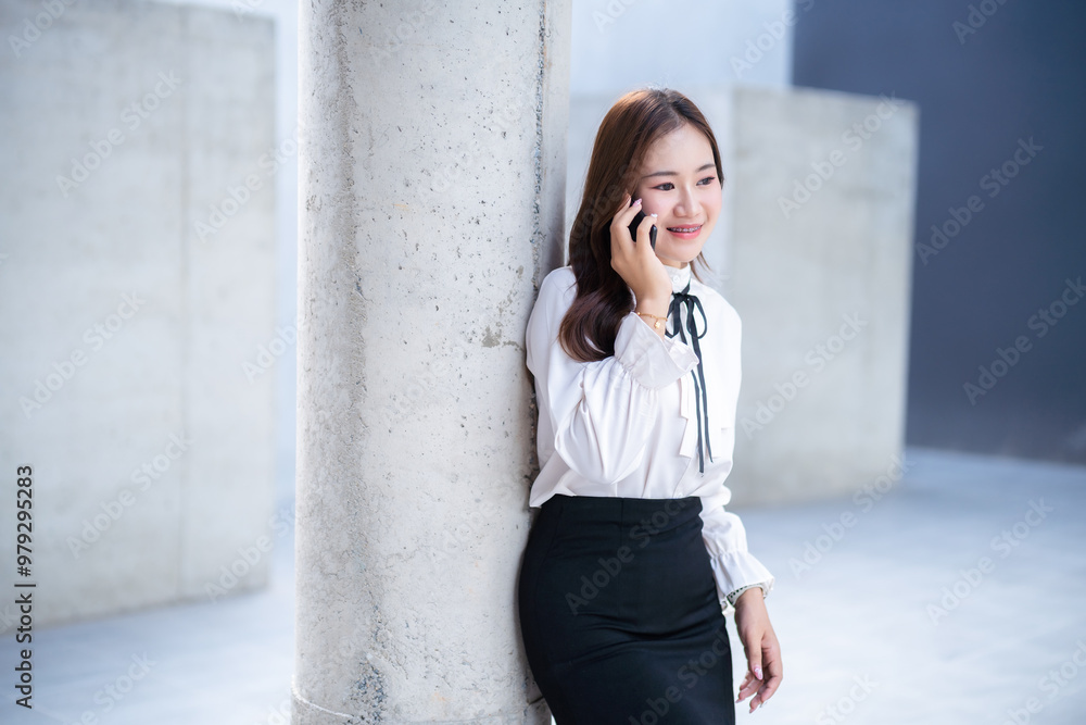 Portrait of beautiful happy Smiling asian woman relaxing talking making using smartphone in cafe interior in coffee shop background,Business Lifestyle summer holiday concept