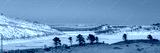 winter scenery panorama in foothills of Rocky Mountains in northern Colorado with frozen Horsetooth Reservoir