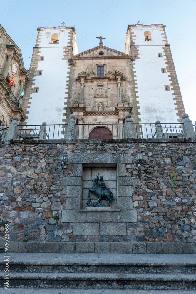 Facade of the church of San Francisco Javier, located in the historic center of Caceres, Extremadura, Spain