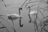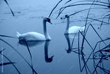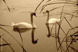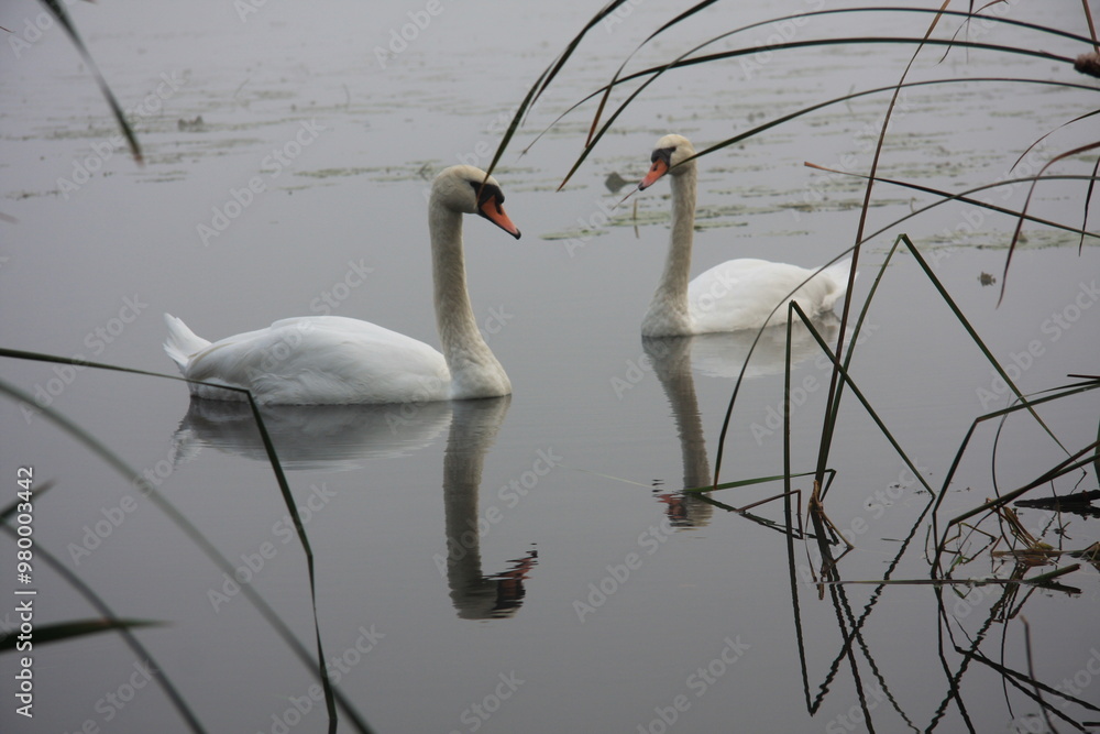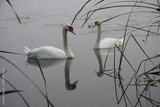 łabędzie, ptaki, płynąć, aura, nostalgia, zamyślenie, woda, jezior, rzeka, jesień, natura, piękno, gracja, mgła