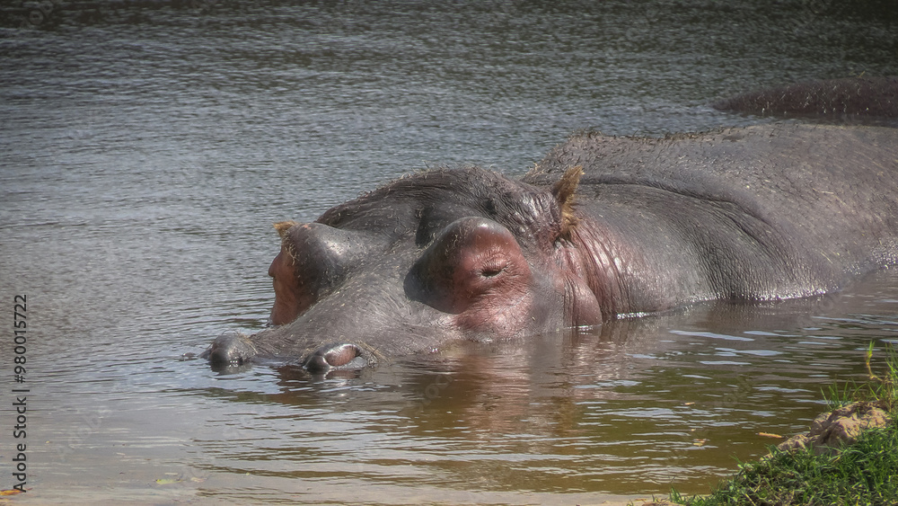 portrait d'un hippopotame immergé dans l'eau