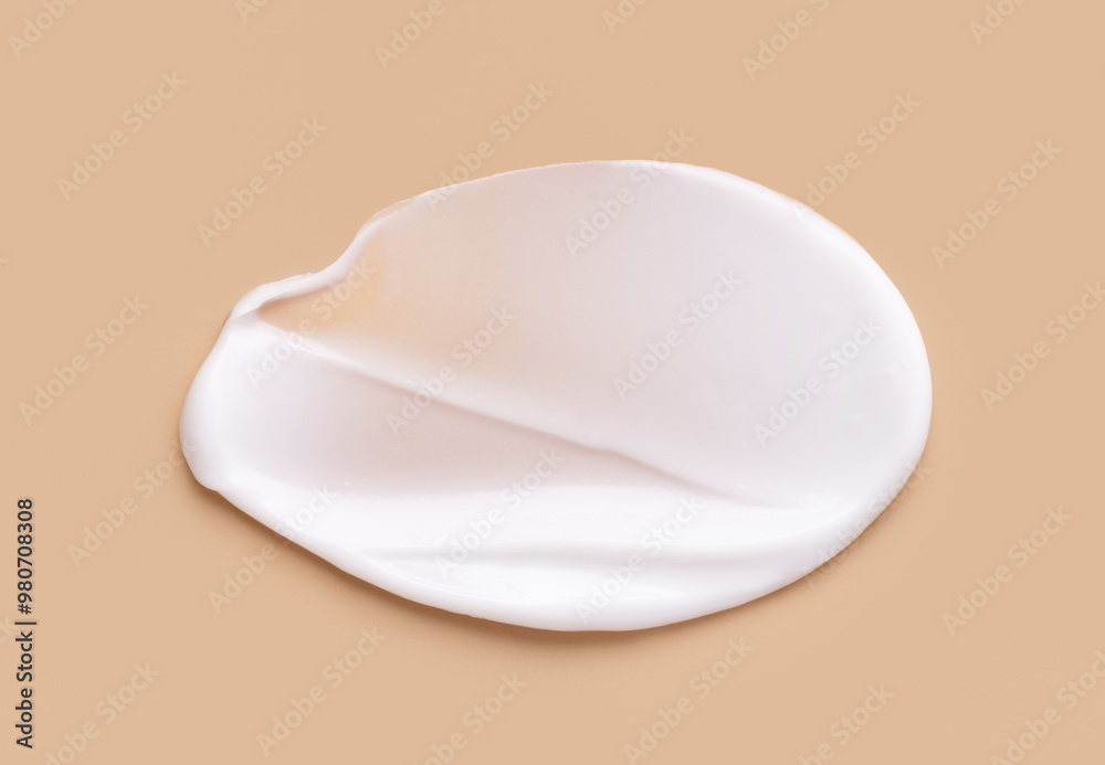 creamy smear of white cosmetic texture close up on beige background skin care concept