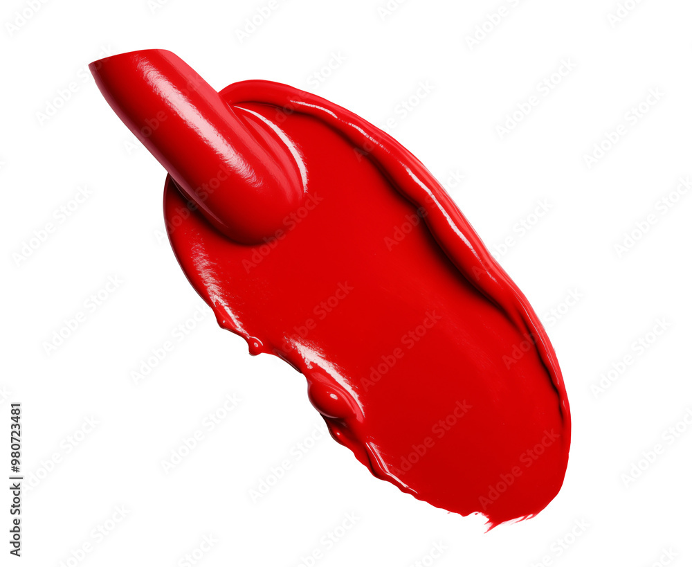 cosmetic smear of glossy lip gloss texture in red color on transparent background