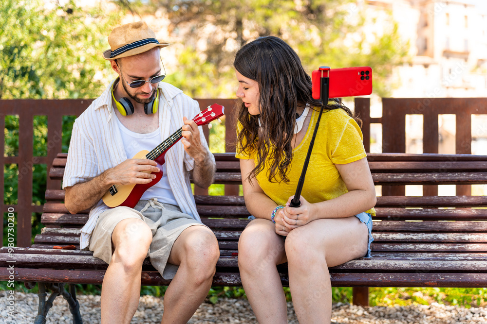 Couple enjoying the Spanish summer with music and party