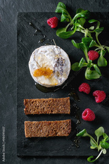 Goat cheese with honey and raspberries