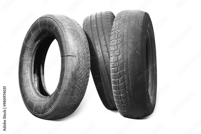 old worn damaged tires isolated on white background