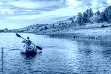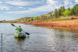 senior male is paddling an inflatable packraft on Horsetooth Reservoir in Colorado