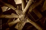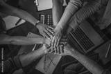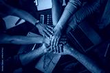 A group of people are holding hands in a circle. Concept of unity and teamwork