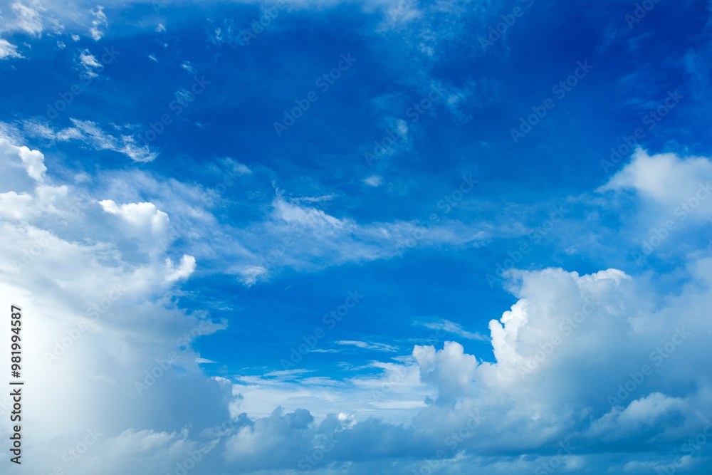 Blue Sky background with tiny Clouds. Summer blue sky. Sky clouds. Blue sky and white clouds background