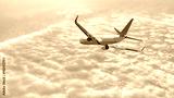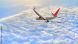 White passenger airplane flying in the sky amazing clouds in the background - Travel by air transport