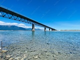 Scenic spot at Haast River Bridge, one lane bridge in Haast, West coast, South Island, New Zealand. Bridge over the river