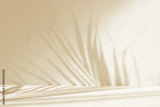 Abstract beige color studio background for product presentation. Empty room with shadows of window and palm leaves . 3d pastel color room with copy space. Summer concept. Blurred backdrop.