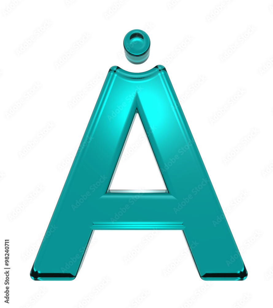 One letter from turquoise alphabet set, isolated on white. Computer generated 3D photo rendering.