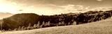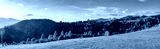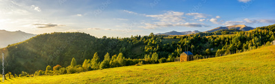 panorama of rural landscape in carpathian mountains in autumn. sunny day. grassy field and rolling hills. countryside scenery of ukraine. village in the distant valley
