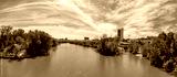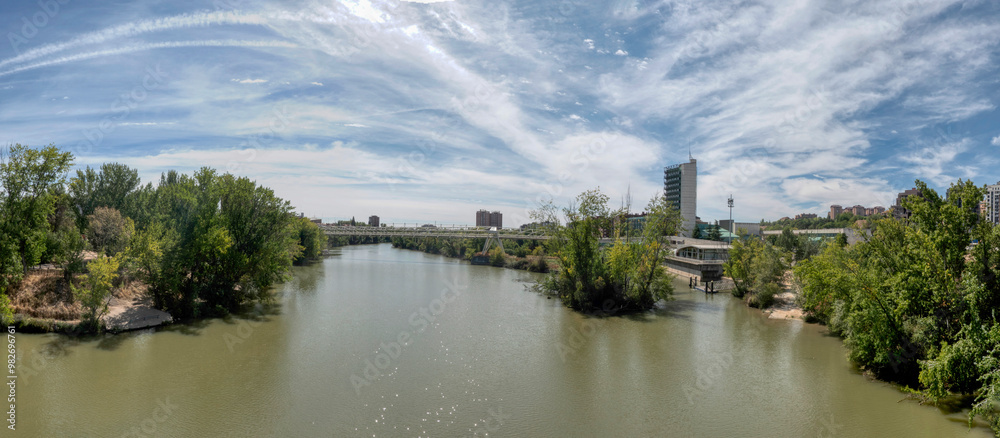 Landscape with the Pisuerga River as it passes through Valladolid, Castilla Leon, Spain.