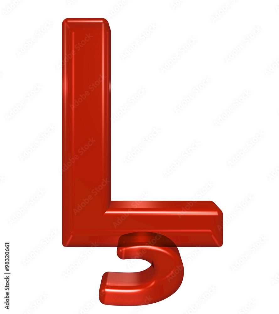 One letter from red glass alphabet set, isolated on white. Computer generated 3D photo rendering.