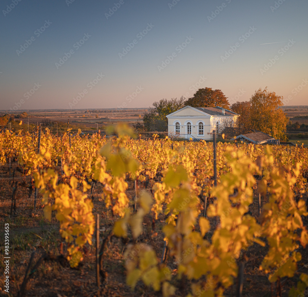 Nice restaurant and wine cellar at wonderful vineyards at Tokaj in autumn