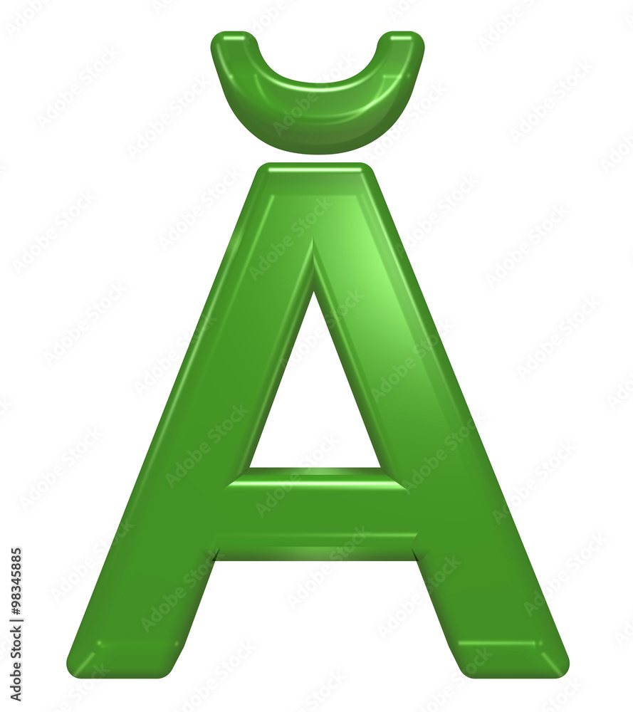 One letter from green glass alphabet set, isolated on white. Computer generated 3D photo rendering.
