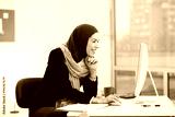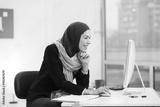Beautiful Arabic business woman working on computer. Woman in her office, shallow depth of field