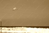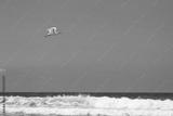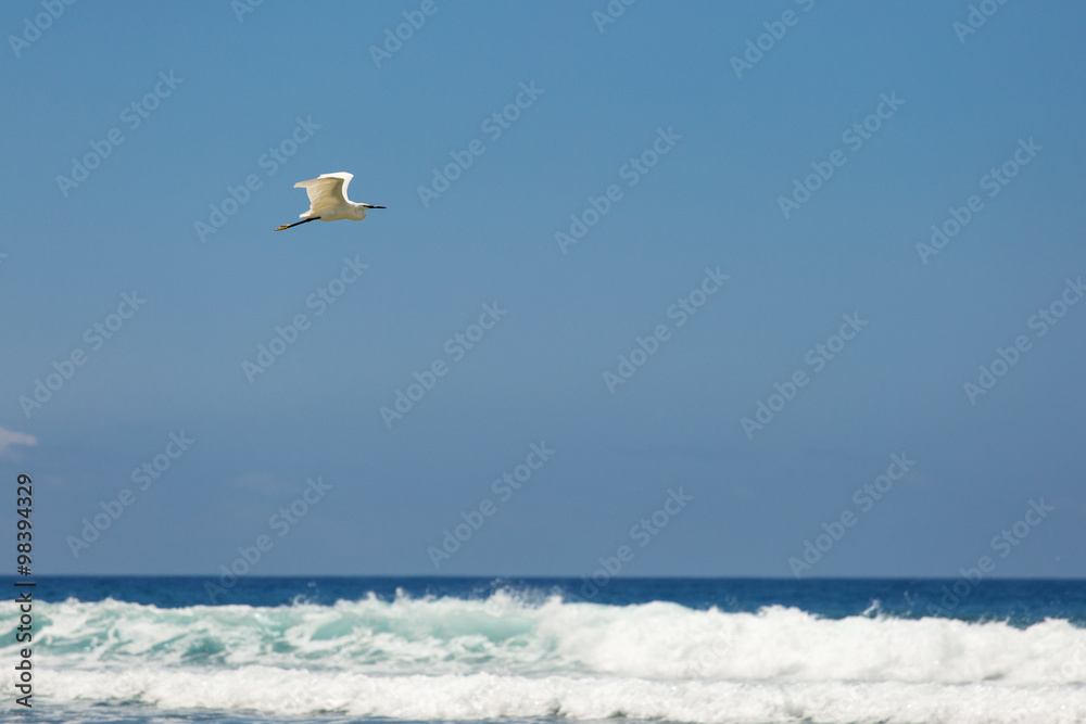 White bird flying over white waves