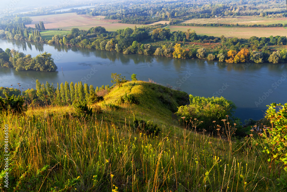 GR2 hiking path on the Andelys cliffs. Normandy region