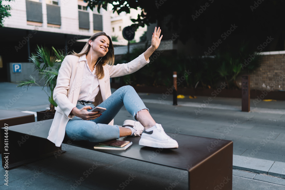 A Man Walks With a Bicycle in a City Setting, Showcasing Modern Architecture and a Sunny Day in the Background